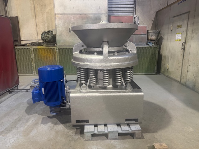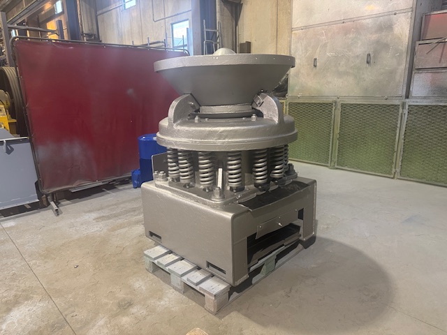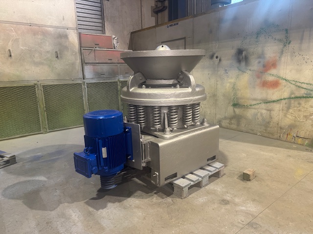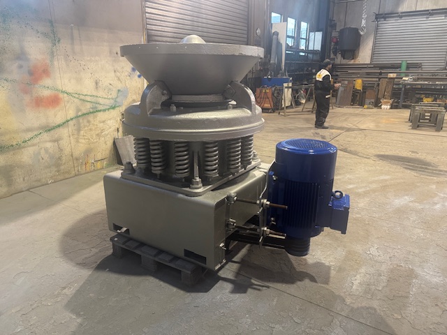 Frantoio a cono Mem Gravicone A500 ricondizionato 2024, cono e campana come nuovi, alimentazione massima 60 mm. produzione c.ca 25 ton/h con regolazione a 16 mm., dotato di motore elettrico a 6 poli da 22 kW montato a bordo macchina. Macchina con libretto di uso e manutenzione e certificazione aggiornata.