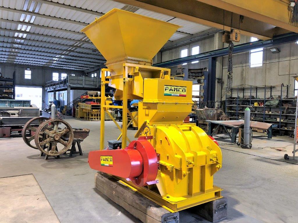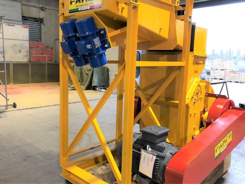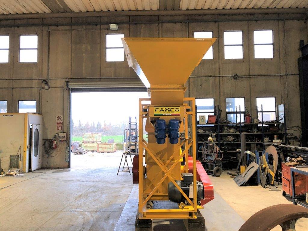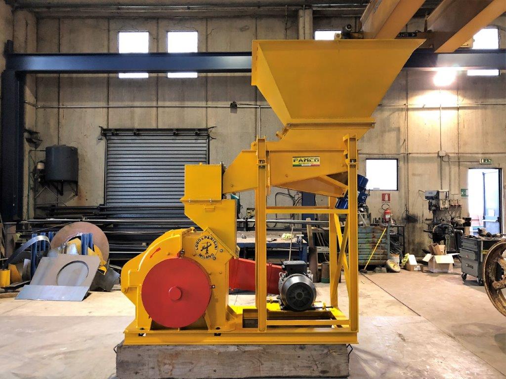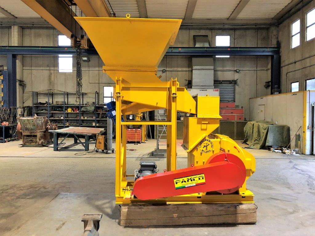 Unità di produzione M66.30 con mulino a martelli liberi Loro Parisini M66 dotata di chassis di supporto a terra, di alimentatore vibrante A600 e di convogliatore di carico da 1 m3. Potenza complessiva installata 31kW.